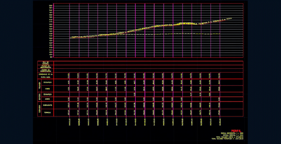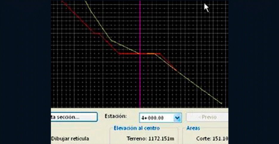 Seleccionando un eje de vía en planta, CivilCAD puede generar la gráfica de perfil de terreno, anotando datos como estación, espesores y elevaciones de corte y terraplén, volúmenes y ordenadas de curva-masa. Además anota en el perfil de proyecto puntos de inicio, término e inflexión de curvas verticales. Las gráficas de secciones transversales se dibujan simultáneamente, generándose un archivo con los datos de areas y volúmenes de corte y terraplén en cada estación. Existen rutinas para compensar áreas, dibujar, anotar, convertir e importar secciones.