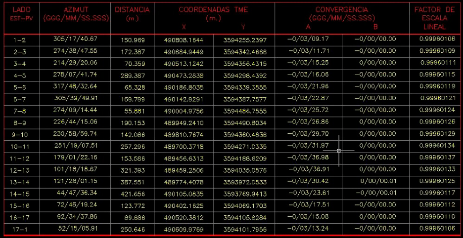 Se ha incluido el cuadro de construcción de polígono con formato requerido por el RAN. Los datos de grados, minutos y segundos de azimut y convergencia se separan con diagonales, las distancias y coordenadas se presentan sin separador de miles. Incluido a partir de la versión 2014 de CivilCAD