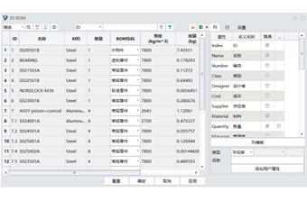 La información de atributos de todas las piezas se puede mostrar en filas y columnas de un BOM 3D, y se puede editar y exportar directamente a dibujos de ingeniería 2D.